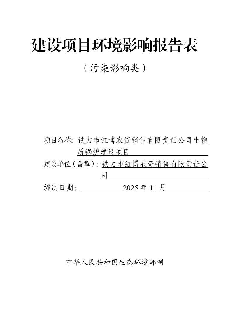鐵力市紅博農(nóng)資銷售有限責(zé)任公司生物質(zhì)鍋爐建設(shè)項(xiàng)目環(huán)境影響報(bào)告表