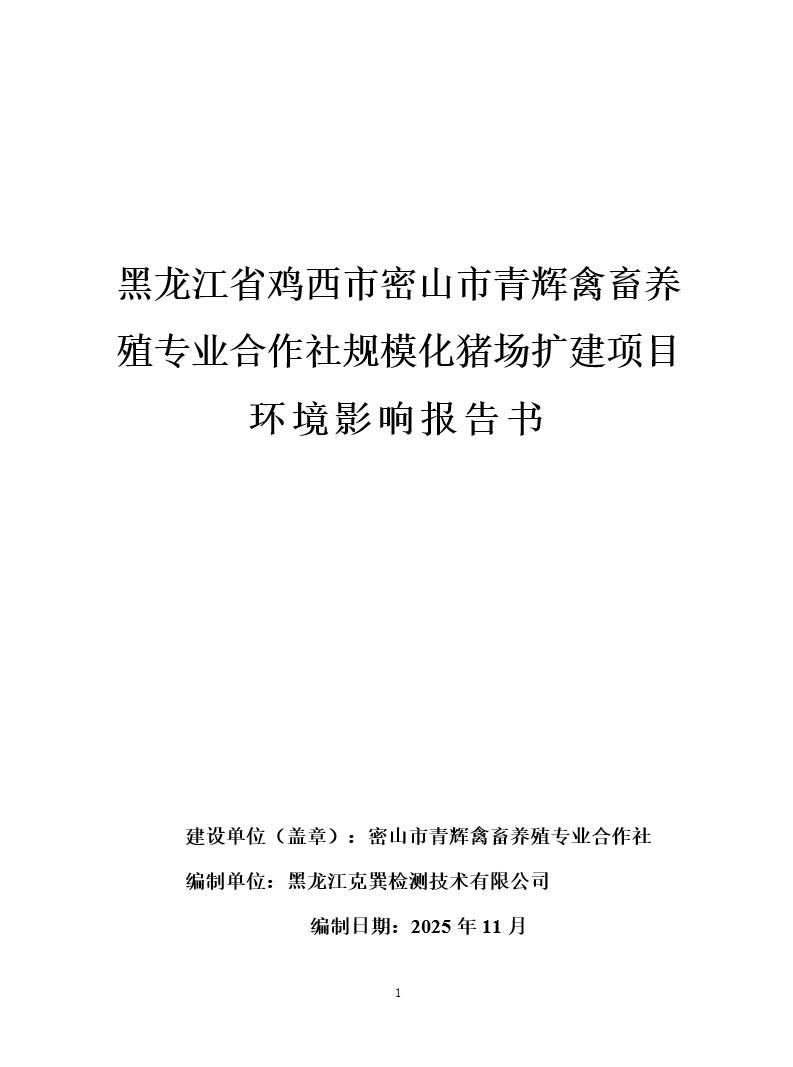 黑龍江省雞西市密山市青輝禽畜養(yǎng)殖專業(yè)合作社規(guī)?;i場(chǎng)擴(kuò)建項(xiàng)目環(huán)境影響報(bào)告書.docx