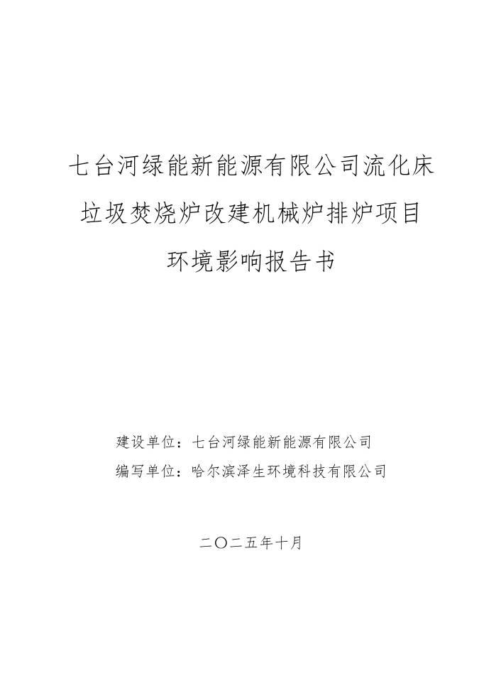 七臺河綠能新能源有限公司流化床垃圾焚燒爐改建機械爐排爐項目環(huán)境影響報告書報批前公示.pdf