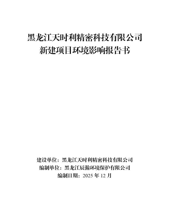 黑龍江天時利精密科技有限公司新建項(xiàng)目環(huán)境影響報告書及公眾參與說明
