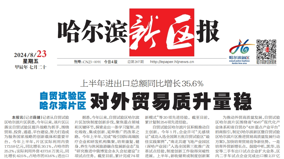 作者:哈爾濱新區(qū)報編輯部 2024-08-27?11:21:18